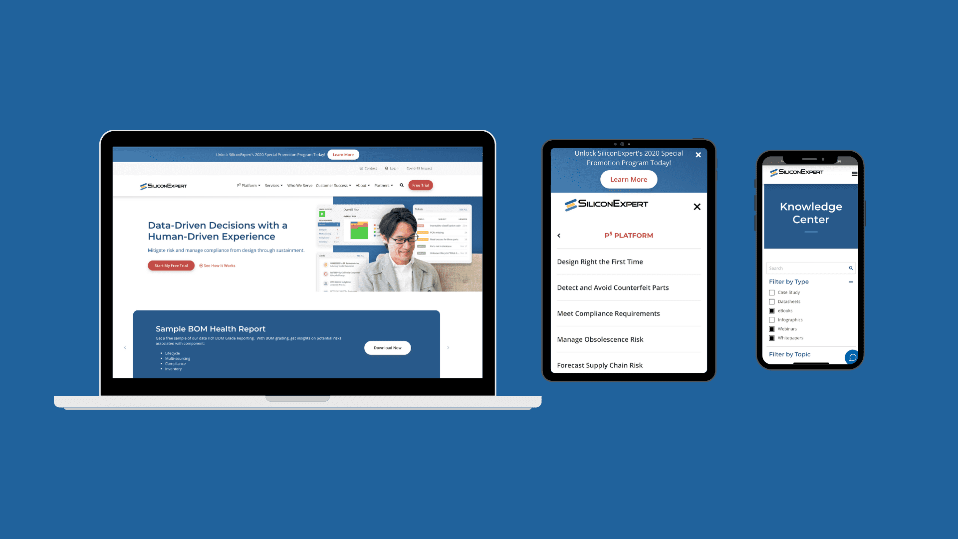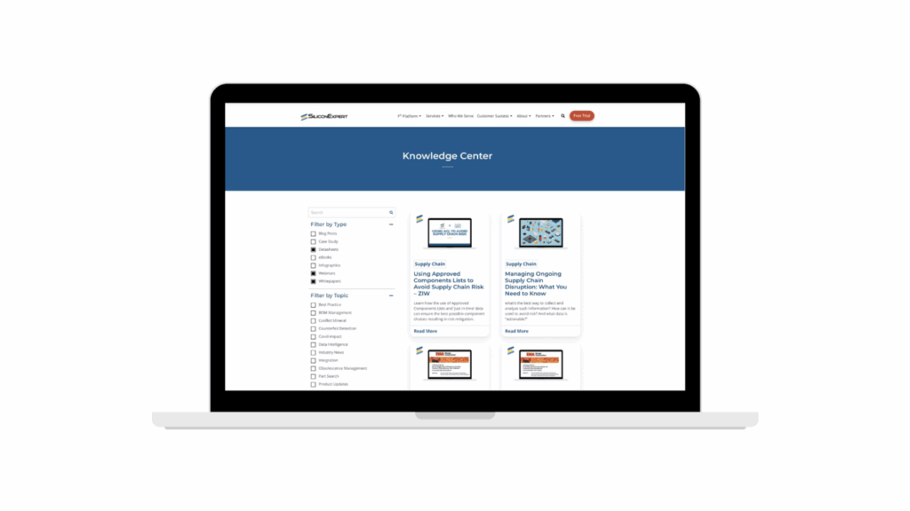 We are so excited to announce the launch of SiliconExpert’s newly designed website – www.siliconexpert.com! Our goal with this website refresh was to create a user-friendly browsing experience for our trusted and valued customers and business partners. We hope you enjoy our new clean design that is easy to navigate, more user-friendly and has tons of quickly accessible, great information and solutions for product lifecycle parts management from design to sustainment.